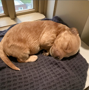 Coraline is a Mini Goldendoodle boasting a gorgeous tri-color coat that doesn't shed. As the tiniest in her litter, she is definitely our little cuddler. She has been making progress with both potty and crate training.